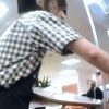 【upskirt2039逆さ撮り店員さん】お股に食い込みぷっくりと盛り上がるフロントに刺繍の入ったサテン系の白Pを接客中に撮られる店員さん
